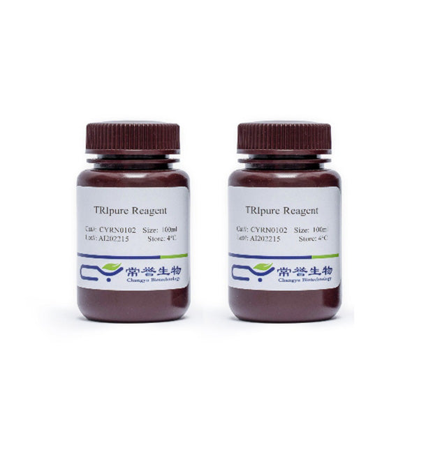TRIpure Reagent is a ready-to-use reagent for the isolation of total RNA from cells and tissues. The reagent, a mono-phasic solution of phenol and guanidine isothiocyanate, is an improvement to the single-step RNA isolation method. During sample homogenization or lysis, TRIpure Reagent maintains the integrity of the RNA, while disrupting cells and dissolving cell components.